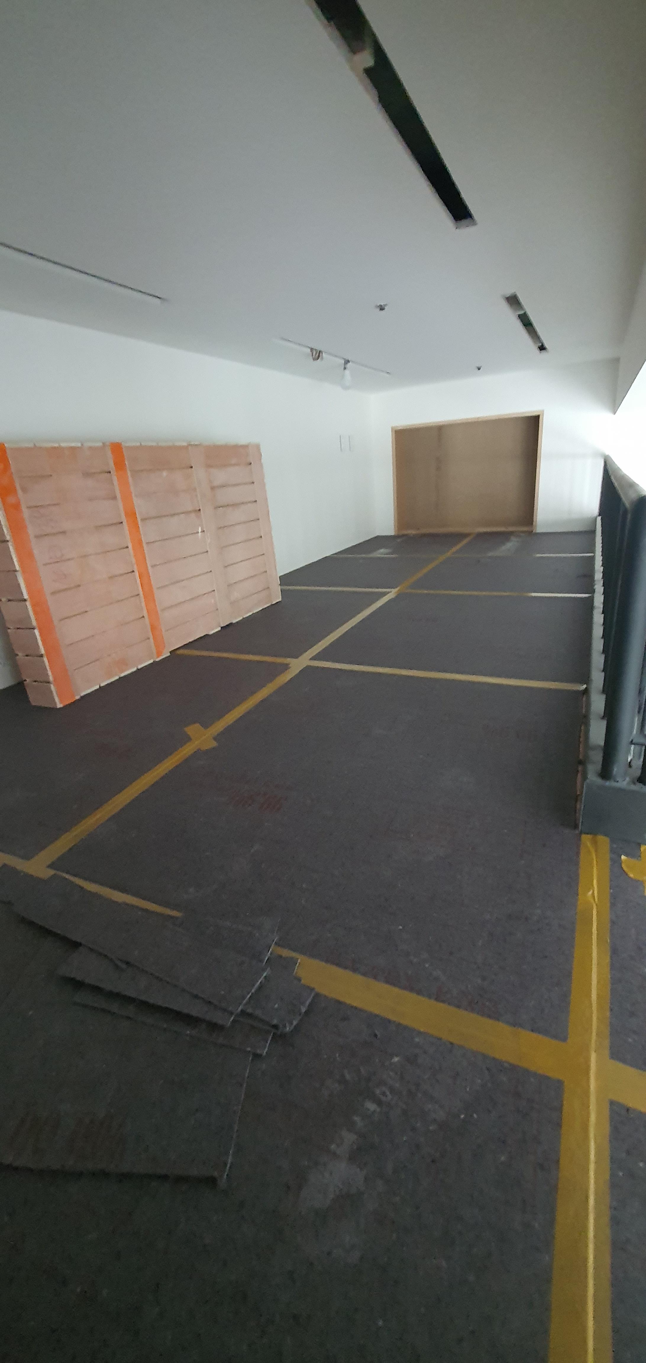이곳의 바닥마감재는 모노륨 ( 장판 ) 으로 필름보호대를 깔아주었습니다