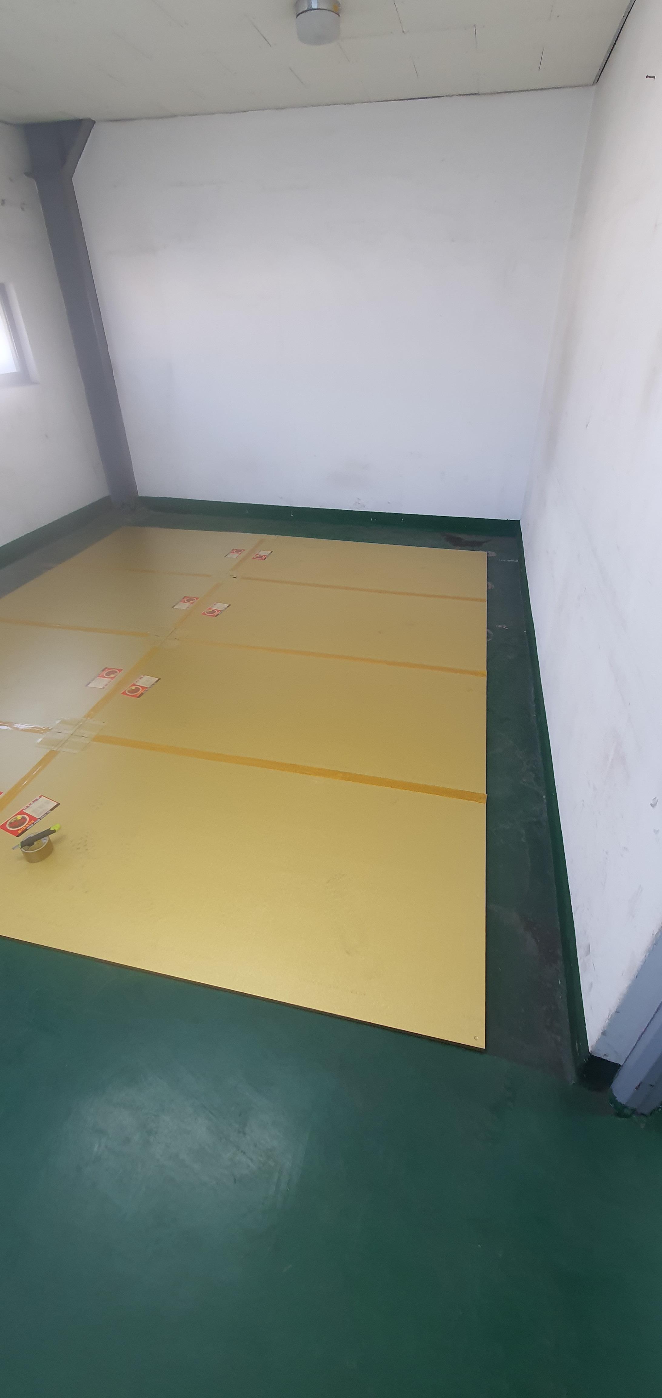 사전에 들었던 바닥사이즈가 맞는지 확인하고 도면을 확인하고 판넬을 깔아줍니다